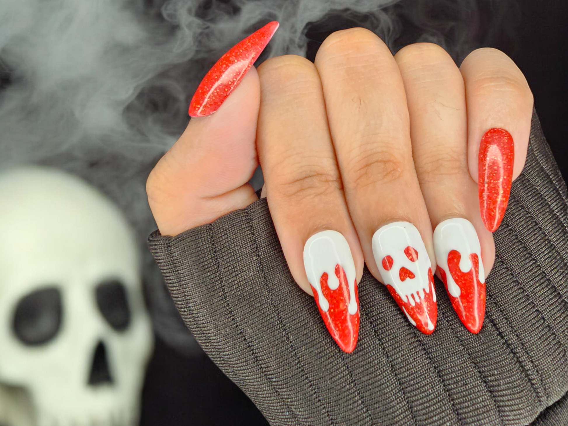 These spooky-chic press-ons aren’t just for Halloween—they’re for anyone who lives for drama, glitter, and a little edge. With vivid red sparkle, dripping designs, and bold white skulls, they’re basically a party on your fingertips. Whether you’re heading to a costume bash or just channeling main-character energy on a Tuesday, these nails serve serious attitude with zero commitment. Long almond shape adds that sultry flair while keeping things classy. Ready to slay in seconds, no salon required